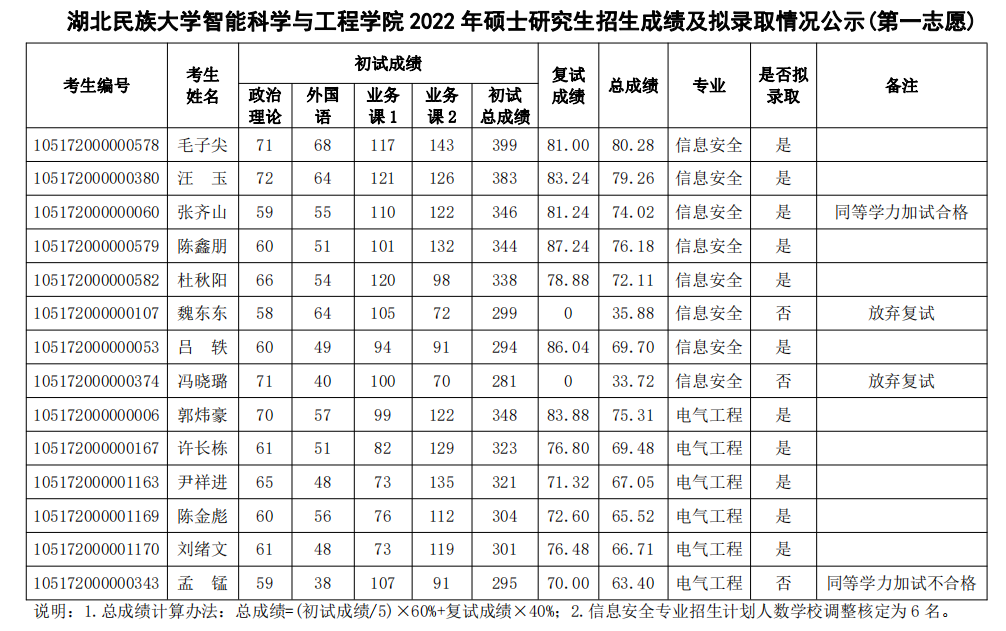 365电子娱乐官方网站智能科学与工程学院2022年硕士研究生招生成绩及拟录取情况公示(第一志愿)
