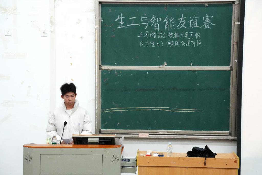 言语交锋燃智慧之火,思想碰撞绽真理之光。11月30日,我院联合生物与食品工程学院于修远楼5B508教室举办以被排斥/同化更可怕为题的友谊辩论赛。比赛邀请了智能学院辩论队副队长黄红玉、优秀辩手苏一哲与生工学院辩论队队长李然涛、优秀辩手李雅婷担任本次辩论赛评委。