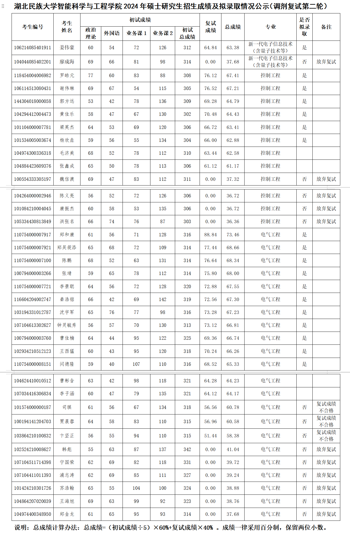 365电子娱乐官方网站智能科学与工程学院2024年硕士研究生招生成绩及拟录取情况公示(调剂复试第二轮)