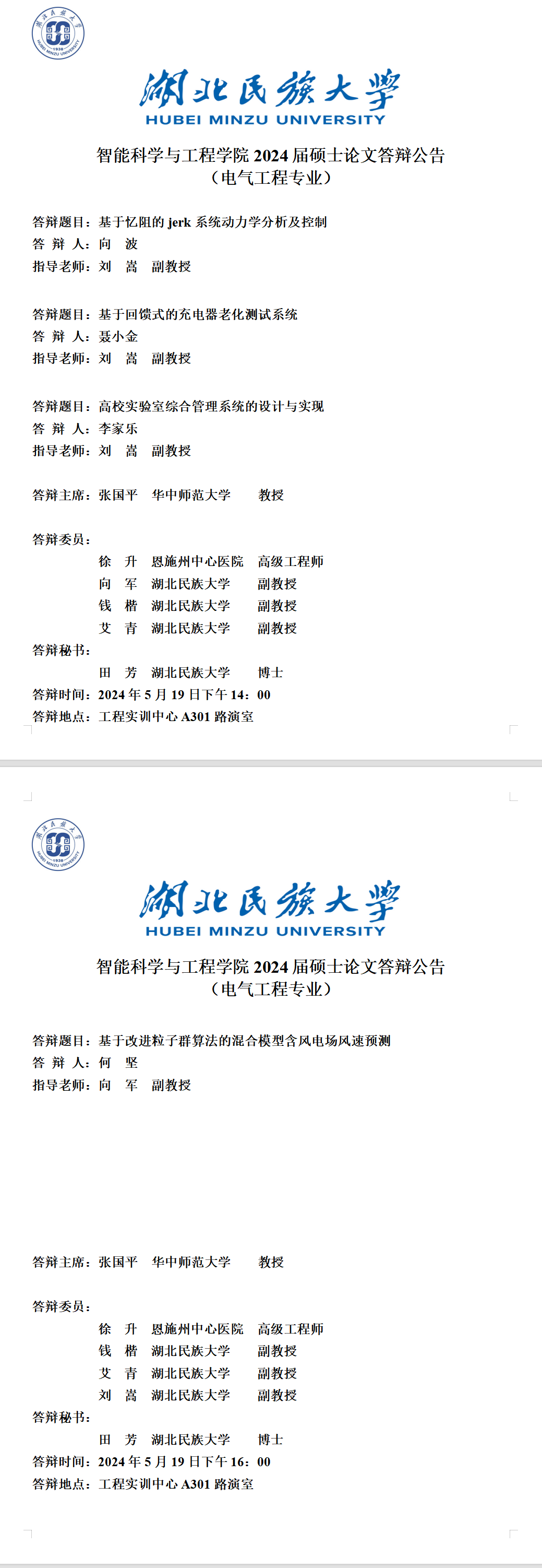 : 智能科学与工程学院2024届硕士学位论文答辩公告(二)