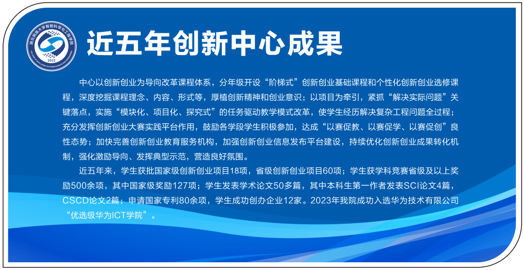 学院以OBE理念为指引,成立创新创业教育工作领导小组,出台《智能科学与工程学院创新创业教育改革实时方案》等制度,深化创新创业教育改革。创新实践中心占地约2000平方米,开设12个创新实验室,大力推进“普惠制+拔尖型”双创人才培养改革,大规模实施大学生创新创业训练计划,以学科竞赛为牵引,全面提升学生创新实践能力。