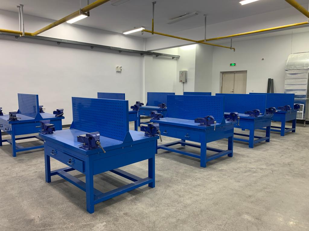 智能制造实验教学中心(金工中心)-绘图仿真实验室(左)、钳工实验室(右)