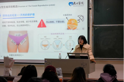 大屏幕上一组显微摄影震撼开场:从初潮到成熟期的生理图谱如花绽放,吴医生以“生命密码破译者”的视角,将晦涩的医学知识转化为青春物语。“月经不是惩罚,而是生命授予女性的勋章”,这句开场白瞬间调动了课堂的气氛。通过生动的视频展示,同学们第一次直观看到卵巢的工作机理,理解经期腰酸、腹胀等12种常见症状的科学本质。