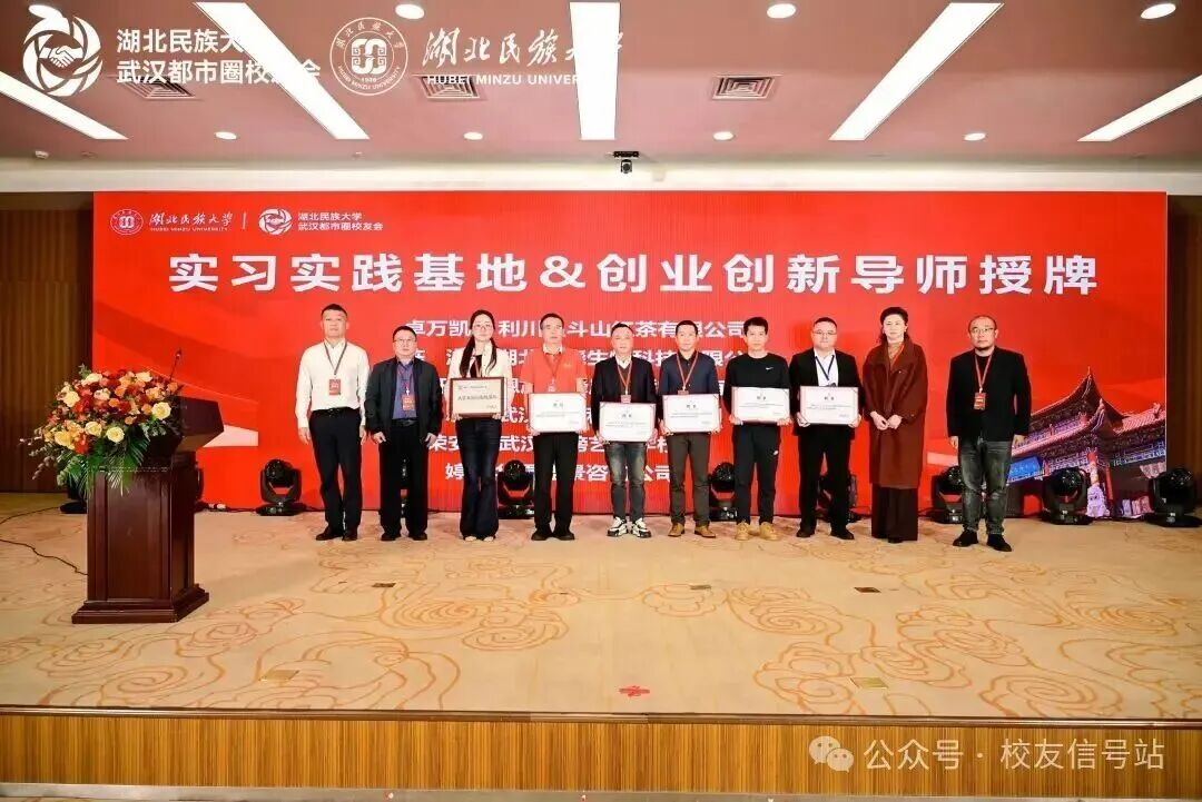 365电子娱乐官方网站经济与管理学院院长张新平、体育学院院长何斌、音乐舞蹈学院党总支书记张蕊、医学部党委副书记许宗友,为利川星斗山红茶有限公司卓万凯、湖北沃饶生物科技有限公司陈洪、恩施市峰岚板桥党参有限公司王开明、武汉秋叶教育科技有限公司张志、武汉金榜艺术学校舒荣安、华夏盛景咨询张婷等授牌。