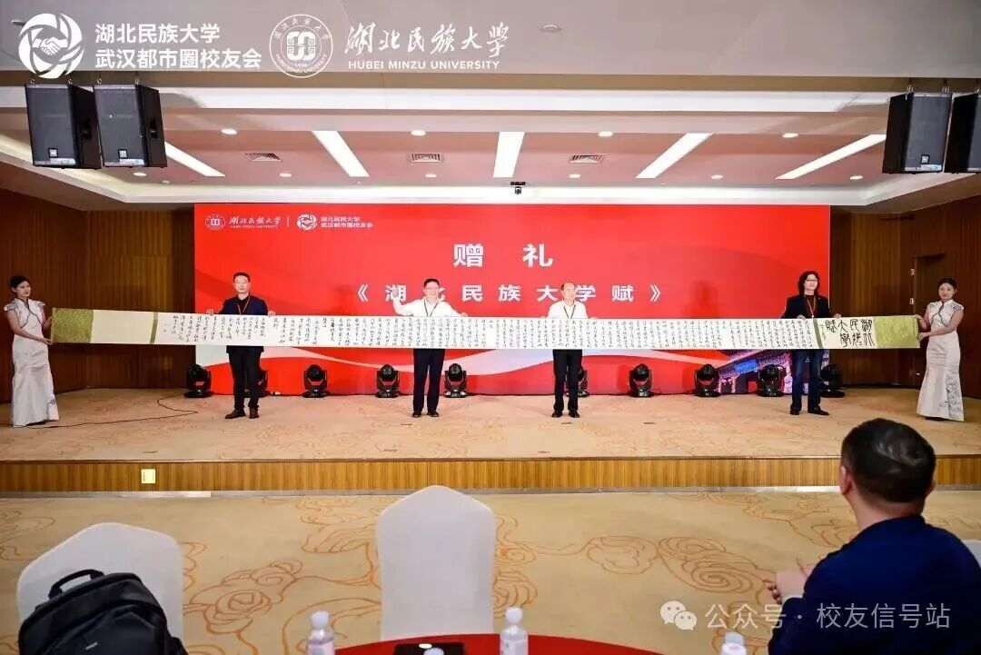 庆祝晚宴上,一篇由杰出校友杨如风先生精心创作的《湖北民大赋》将现场气氛推向高潮,校友们声情并茂的朗诵,让母校的办学历史、精神文脉与壮丽征程如画卷般在字里行间徐徐展开。