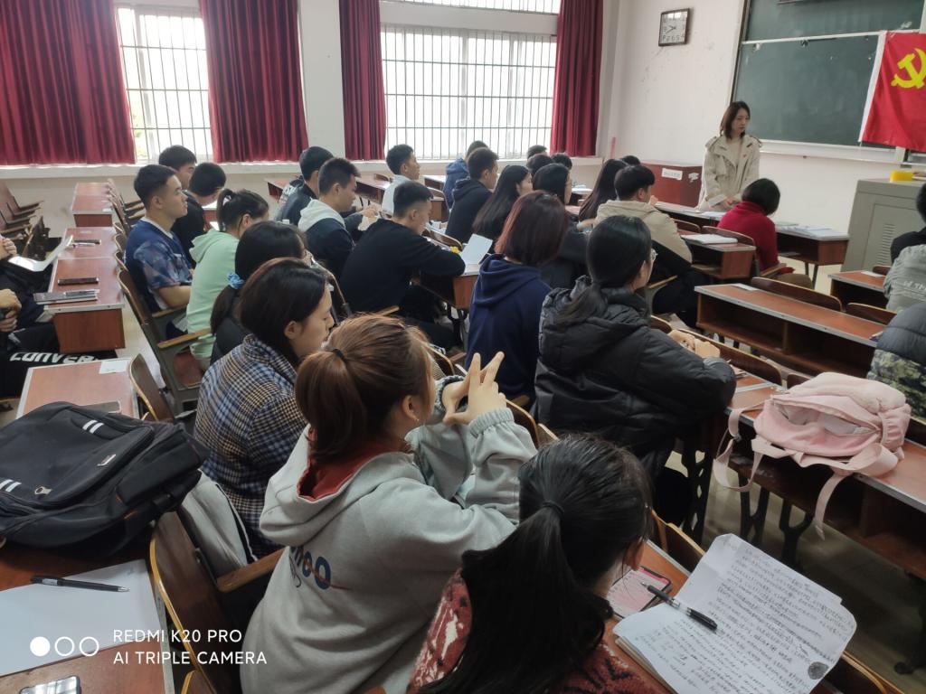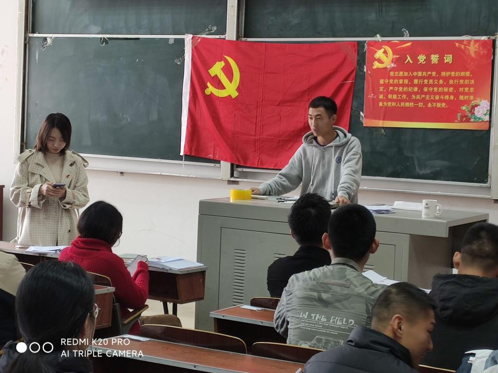 (通讯员 罗澜 胡胜涛 图片/李静静)为不断提高党员队伍先锋模范作用的积极性、主动性、创造性,切实增强党支部的凝聚力、创造力和战斗力,十月十八日晚,我院在德智楼二楼9b113教室召开支部党员大会,大会由组织委员宋娜主持召开。教师刘尧峰、袁艳红,学院教学科副科长肖杰文,学生科科长姜素凤,团总支书记张弋明,及全体入党积极分子、预备党员参加本次会议。