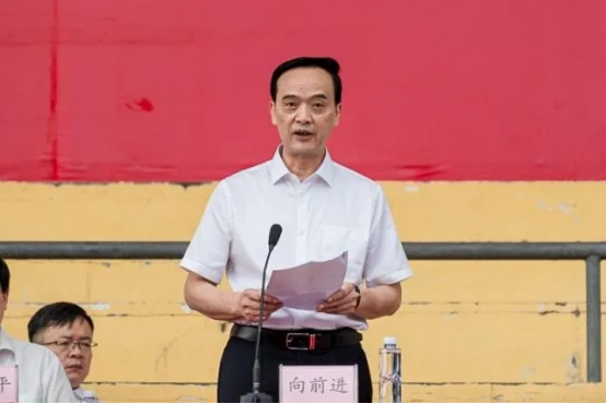 我校党委书记向前进在主持开学典礼中指出2021级新生要树立正确的三观,以青春之我、奋斗之我去拥抱新时代,以真才实学服务人民,以己之力贡献国家,当好社会主义建设者和接班人。