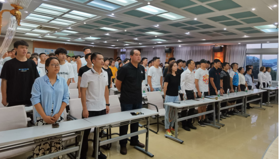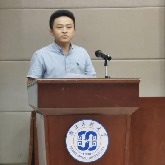 大会第四项,教师代表华中师范大学博士王先茂发言,希望与同学们携手迈步,开启新的篇章,开启人生中新学习,新生活。学会照顾自己和他人,要有真材实学,学真知识,练真本领,衷心祝愿各位同学学有所得,学有所成。
