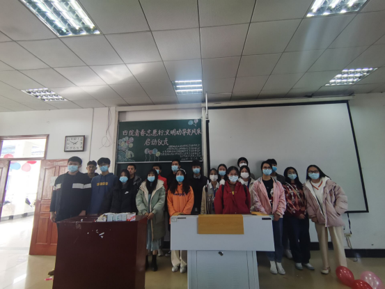 会议伊始,由主持人陈浩杰致开幕词并介绍嘉宾,之后全体起立奏唱《青年志愿者之歌》。紧接着由各院负责人展示本院的志愿服务活动成果,充分体现了各院对志愿公益的热爱与专业。