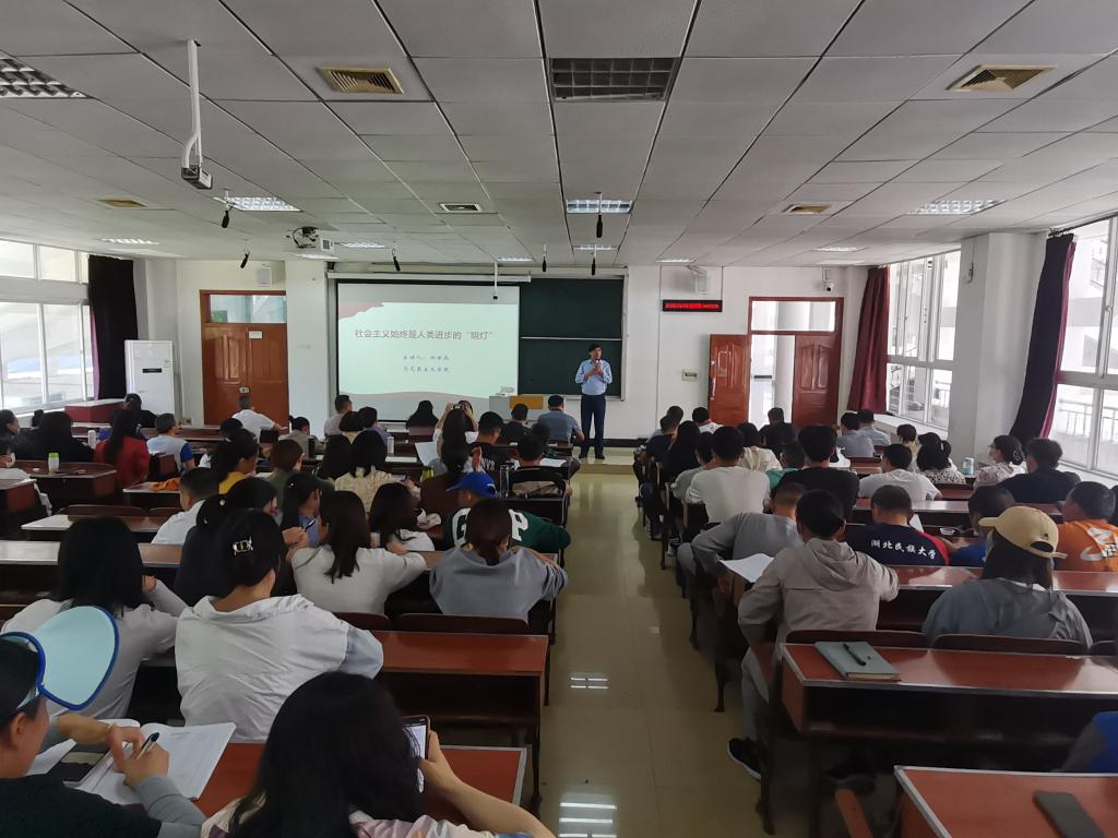 本次党史学习活动邀请到了马克思主义学院邱世兵老师作为主讲人,邱老师以《社会主义始终是人类进步的“明灯”》为题,从社会主义的发展历程展开讲述,尤其重点讲述了社会主义从空想到科学、社会主义从理论到实践、社会主义从一国到多国、社会主义从多国到五国等内容。邱老师的讲述娓娓道来,在座的教职工也认真聆听、认真做好笔记。