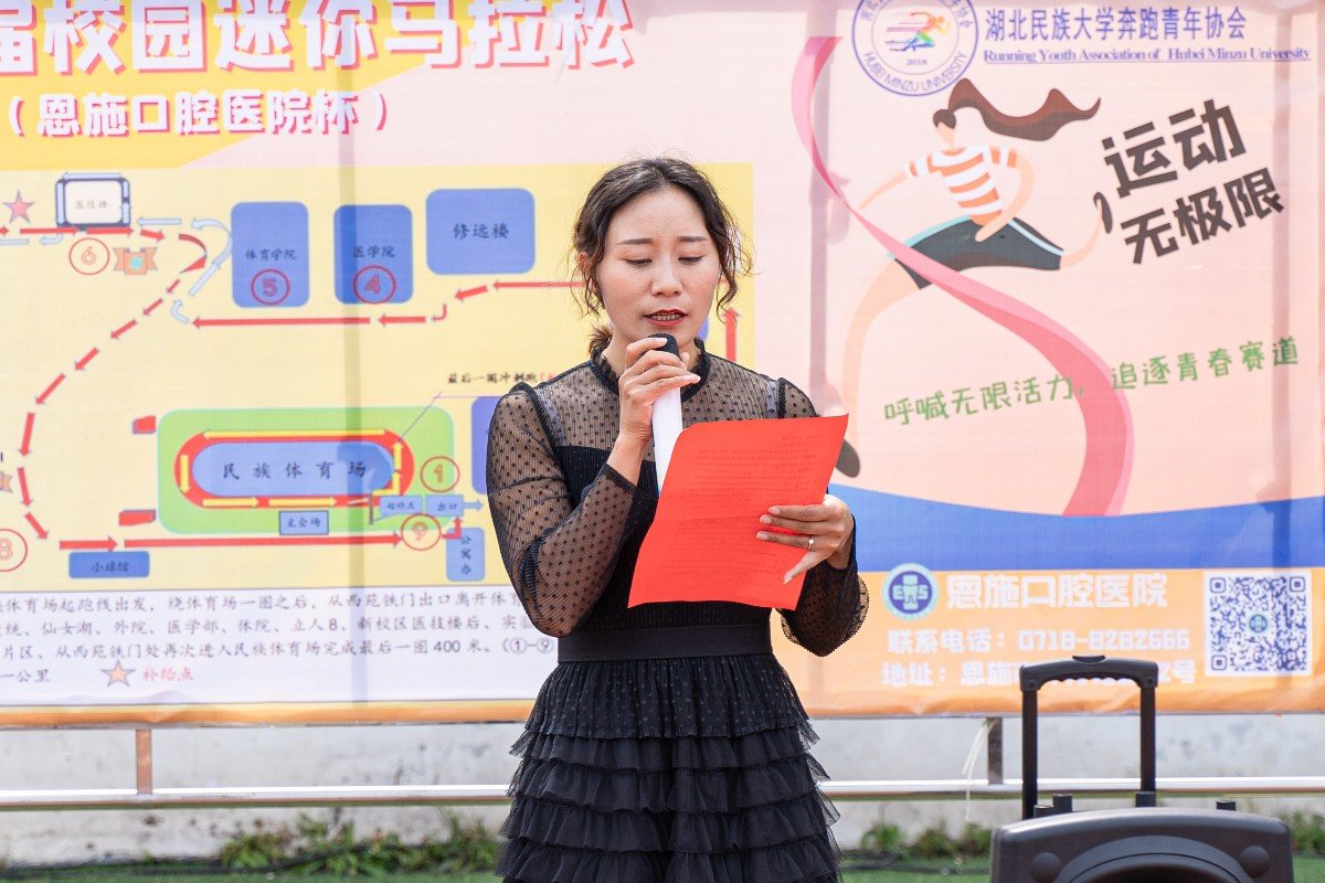 (通讯员 汤藤静 肖雅)为提高大学生参加体育锻炼积极性,丰富校园体育文化并宣传全民运动意识;增强自身免疫力以减少呼吸道感染和流行病的发生、新型冠状病毒感染风险。5月22日,我院奔跑青年协会在民族体育场举办第二届“校园迷你马拉松”(恩施口腔医院杯)活动。我校校团委副书记向驰、我院党总支书记何斌、党总支副书记万利出席本次活动,并受到恩师口腔医院的全力赞助和校卫队以及全校师生的大力支持。