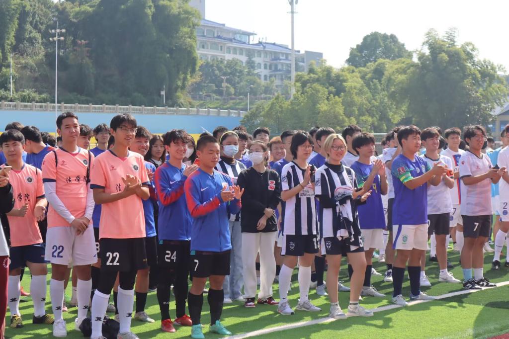 最后,到场的学院领导们到足球场中心进行开球仪式。