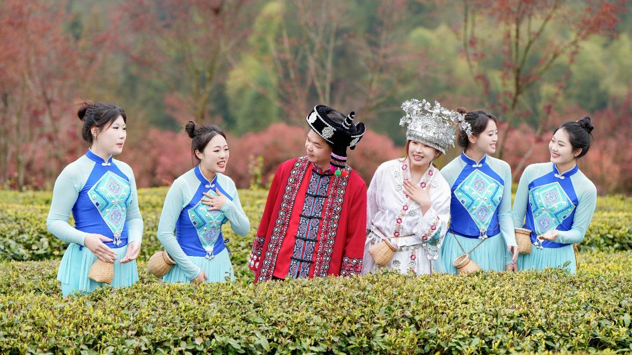 随后,众人移步至绿意盎然的茶田之中,一边采摘鲜嫩茶芽,一边放声歌唱山歌,在茶香与歌声中尽享田园野趣与民俗风情。