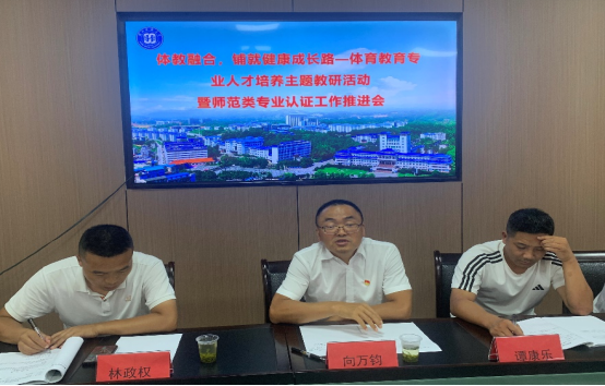 为落实“体教融合,校校合作”,加快推进师范专业认证工作,全面提升我院师范教育质量,6月18日下午,我院在会议室开展体育教育专业人才培养主题教研活动。参会人员包括:实习单位恩施市思源学校校长向万钧、思源学校体育组教师、365电子娱乐官方网站体育学院书记赵魁轩、院长何斌、副院长胡庆华、副院长张辉以及教师和学生代表。会议由体育学院副院长胡庆华主持。