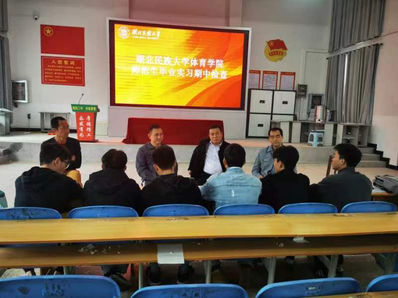 期间,三个组分别与实习单位进行座谈,第一组由体育学院院长倪东业带队前往利川市二中、利川市马前中学检查毕业生实习工作,随行人员有体育学院办公室主任宋庆龙、体育教育专业负责人林万久、实习带教老师杨林。