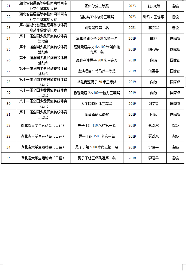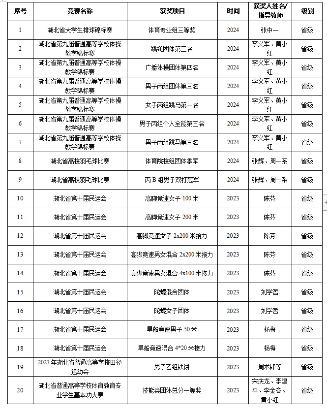 近年体育竞赛类荣誉
