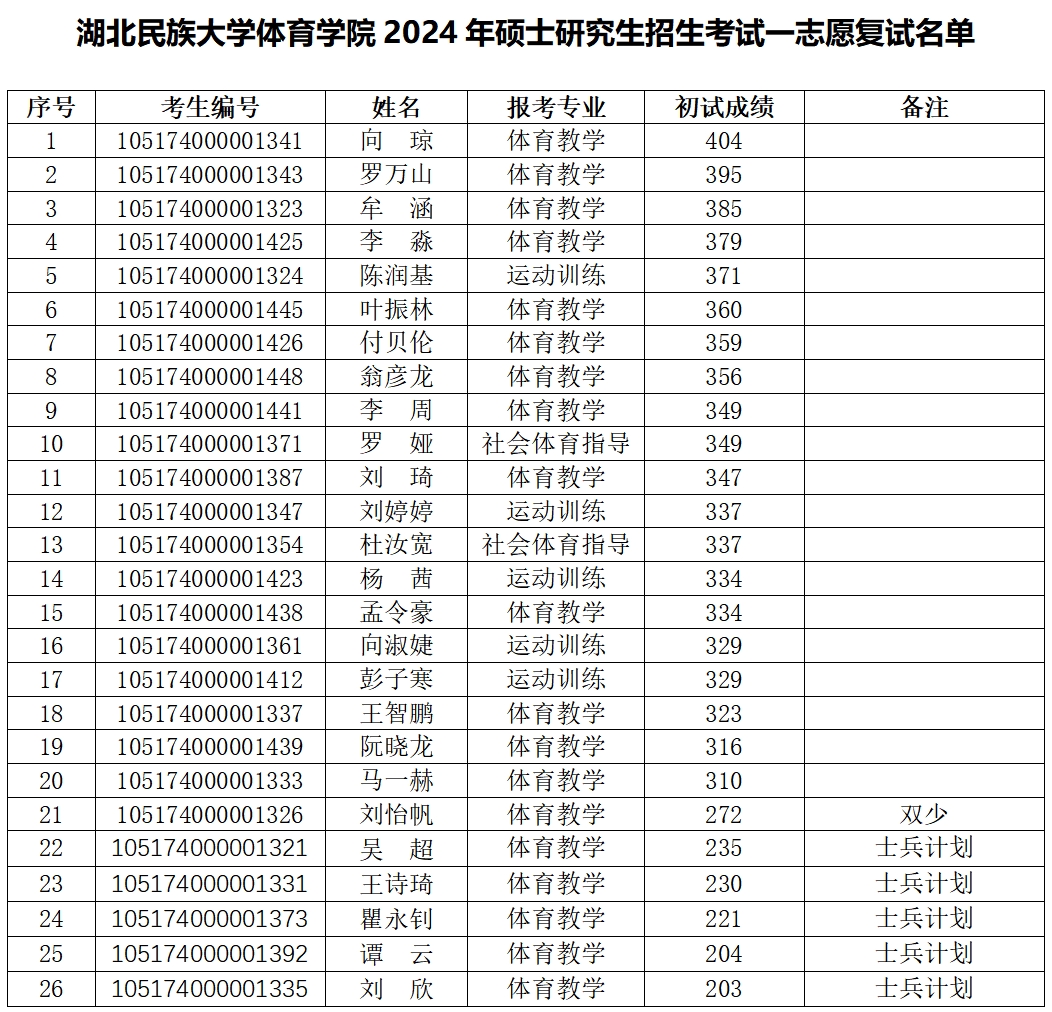 365电子娱乐官方网站体育学院2024年硕士研究生招生考试一志愿复试名单