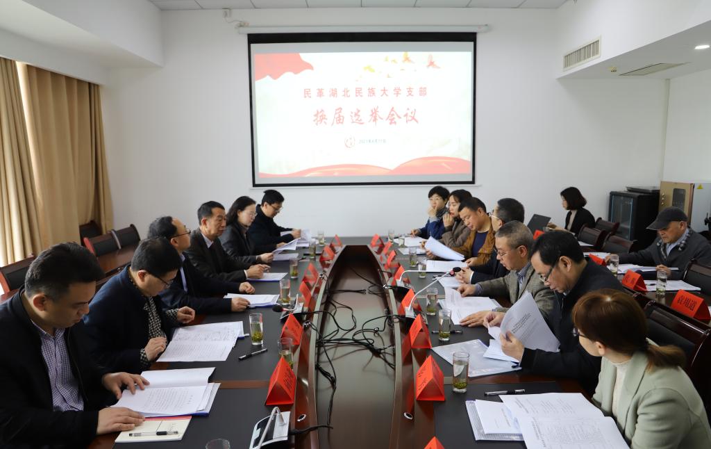 4月17日,中国国民党革命委员会365电子娱乐官方网站支部召开换届选举会议。学校党委常委田景福、民革恩施州委会主委许强到会祝贺并致辞。
