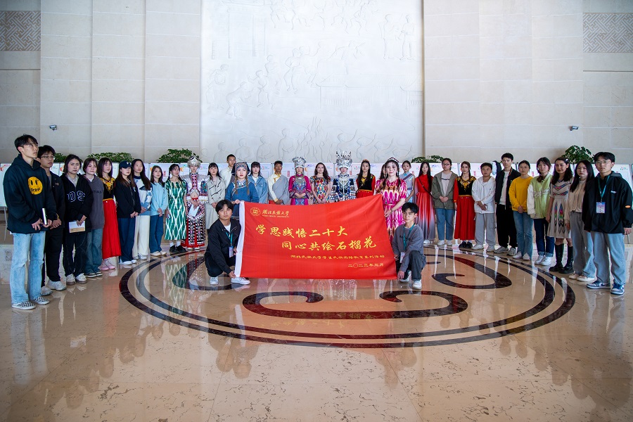 同时,学校开展沉浸体验式实践,实施“乡村行+民族团结”“社区计划+民族团结”行动,以“键对键”“面对面”双线并进方式提升活动接受度,年平均参与3000余人次,让学生从受教育者转变为宣传者。此外,学校联合创作“榴榴”Logo文创品牌,将其广泛用于各类民族团结进步宣传、主题活动及新媒体宣传等用途,积极搭建“一月一节”“一院一品”文化平台,将一系列中华优秀文化展示在校园各处,例如建设民族团结进步阶梯、红石榴隧道等,营造“民大处处石榴红”良好氛围。