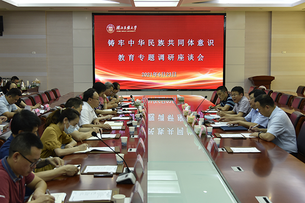 省民宗委民族二处处长谭兵介绍了此次调研的目的,充分肯定了我校开展铸牢中华民族共同体意识教育的做法。调研组一行与学校相关学院和职能部门负责人就如何开展铸牢中华民族共同体意识教育进行了深入交流和探讨。