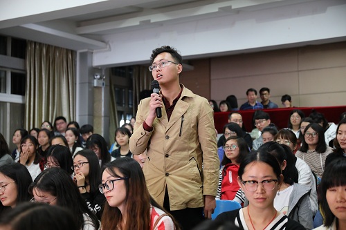 提问环节,曾艳兵就学生提出的“如何理解鲁迅和卡夫卡的追求”、“鲁迅与卡夫卡的作品对当代人的影响”等问题进行详细解答。他对青年提出建议,人不能永久沉浸于痛苦之中,可以通过阅读作品找到人生的意义与价值。