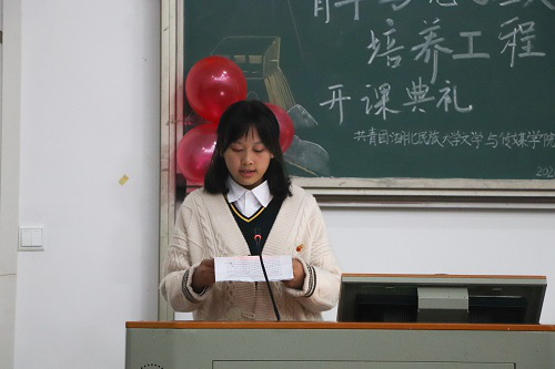 典礼在全体师生合唱共青团团歌中拉开序幕。谭芸宣读我院“青年马克思主义者培养工程”相关条例和管理方案。