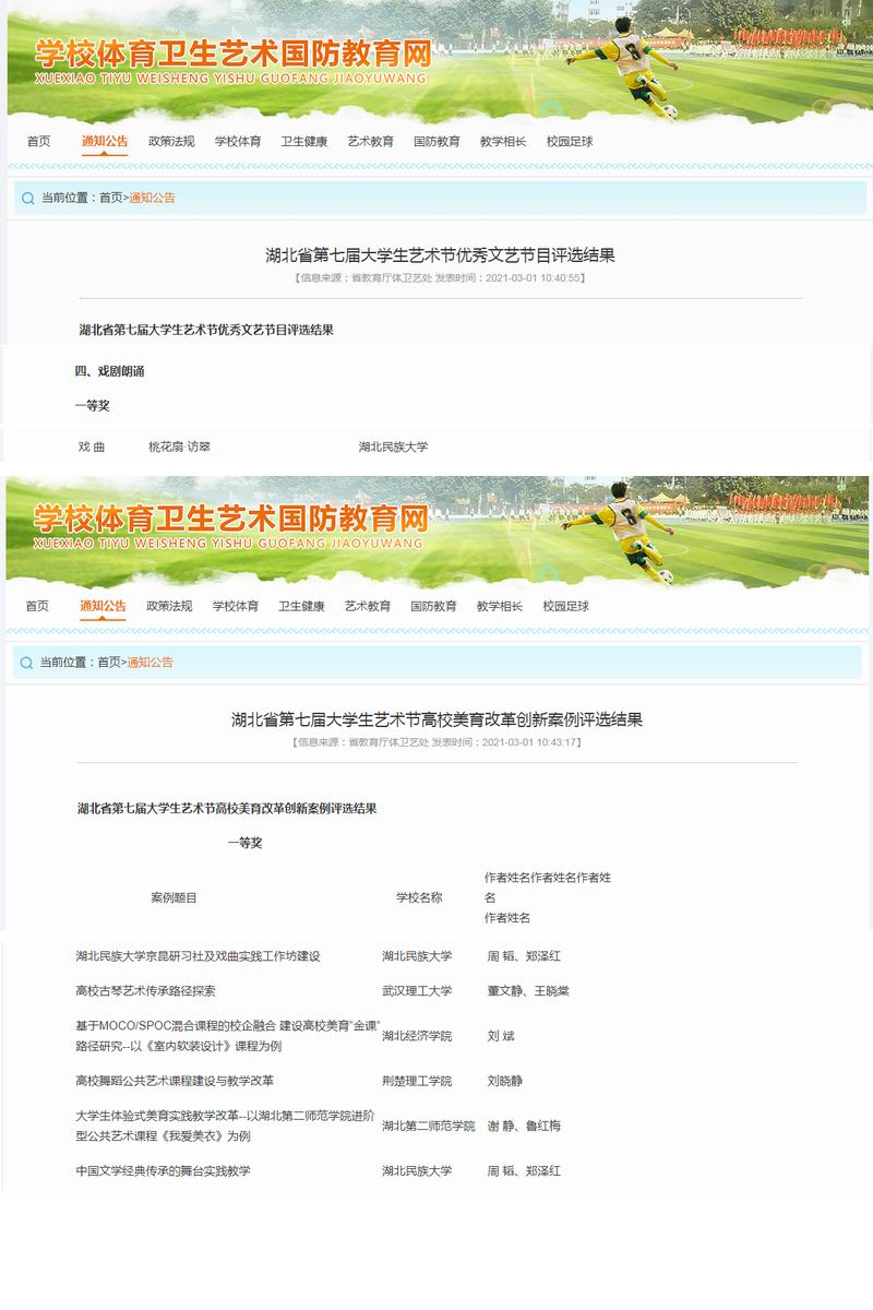 我院获第七届湖北省大学生艺术节高校美育改革创新案例一等奖2项