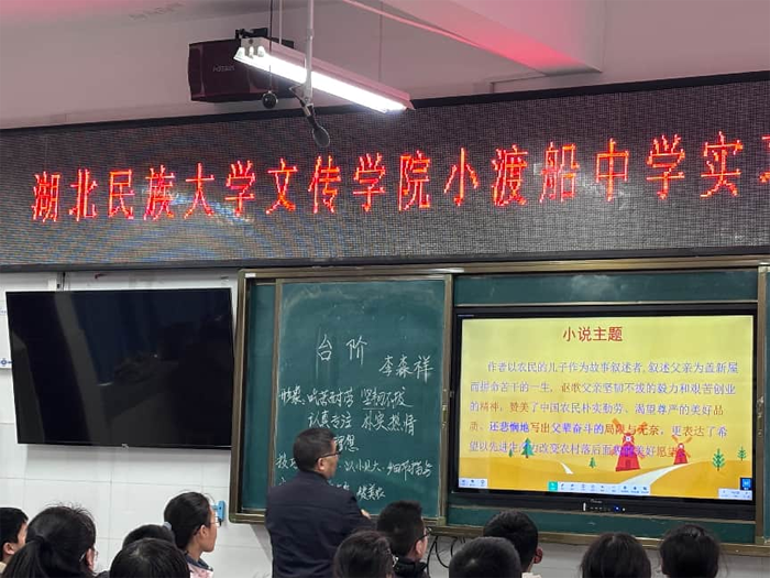 在恩施市小渡船中学,初中语文课堂的生动与激情给同学们留下了深刻印象。张自尧老师执教《台阶》一课,以其一贯的循循善诱,引导学生自主探究小说的人物形象、写作技巧与深刻主题,真正践行了“学生为主体,教师为主导”的教学理念,实现了知识传授与育人目标的和谐统一。燕娥老师带来的《安塞腰鼓》则充满了语言的力与美。她以澎湃的教学激情和诗性的教学语言,带领学生通过多种形式的反复朗读,感受文本磅礴的气势、跃动的节奏与炽热的情感,让学生在声音与文字的共鸣中,领略“安塞腰鼓”所象征的生命力量,极大地激发了学生对语文学习的内在热情。