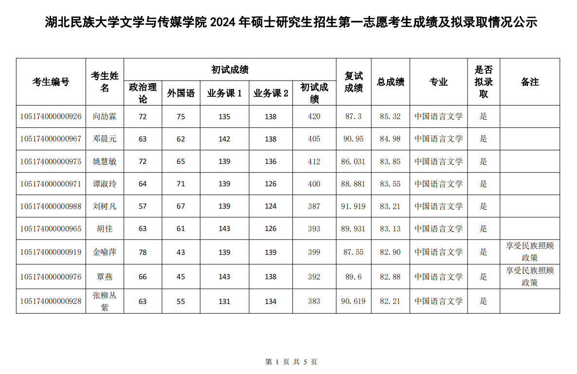 365电子娱乐官方网站文学与传媒学院 2024 年硕士研究生招生第一志愿考生成绩及拟录取情况公示