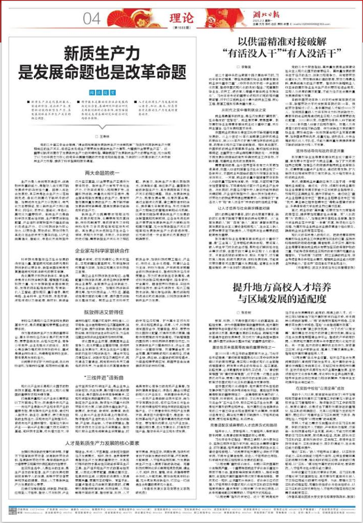 2025年2月3日,《湖北日报》理论版发表我院张宏树教授文章:《提升地方高校人才培养与区域发展的适配度》。