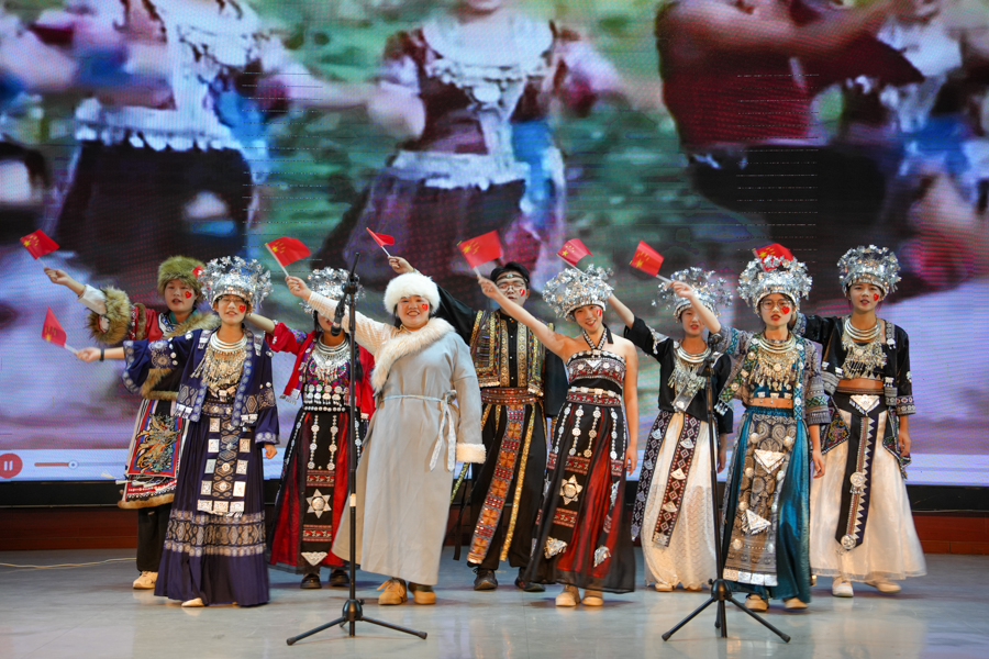 大赛在桂园艺术团带来的舞蹈《Go hard》中拉开帷幕。0123405、0123406支部带来表演《扇舞丹青,灿若繁星》,国风穿搭搭配扇舞表演,将古典舞与中国书法文化、扇文化、剑文化融为一体,把舞、乐、书、画熔于一炉,在情景交融中塑造出一种古雅、端庄的形象,展现出古典扇子舞的独特韵味;0123411支部带来情景剧表演《墨西哥卷饼》,表演通过讲述主角“墨西”的一生,反映内卷时代下青年一代面临的各种竞争压力,通过原创剧情呼吁广大青年找寻自己所爱,坚持追逐梦想,不要迷失在时代洪流当中;0123401-02支部带来表演《多彩民族一家亲》,表演者身着特色民族服饰合唱歌曲《相亲相爱》,欢快温暖的旋律搭配民族舞蹈表演,传达出民族团结一家亲的精神;0123403-04支部带来表演《不负时代新青年》,影子戏表演和古筝弹奏碰撞,为现场观众带来一场视听盛宴;0123407-08支部带来表演《我和我的祖国》,结合朗诵、合唱和舞蹈等多种形式歌颂祖国壮丽山河,表达出对祖国母亲的热爱和感恩之情;0123409-10支部带来《舞比幸福,美在民大》,欢快活泼的舞蹈串烧表演展现出民大学子的朝气活力,传达出对民大校园的热爱;0123413支部带来表演《时光机》,带领观众回忆童年经典动画片,充满活力童趣的舞蹈表演温馨可爱,赢得现场掌声连连;0123412支部带来表演《梦·红楼》,选取“林黛玉初进贾府”一幕,黛玉扮演者身着戏服,如书中所写“两弯似蹙非蹙笼烟眉,一双似喜非喜含情目”,行动如弱柳扶风,宝玉扮演者明眸皓齿,带着世家公子的俊朗仪态,精心的舞台设计、扎实的台词功底、惟妙惟肖的表演吸引全场关注,剧情重现经典,将中华优秀传统文化传承发扬。
