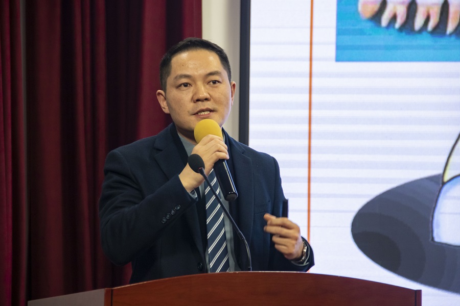 下午的讲座活动,雷鸣从牙齿的作用、牙齿的构造、常见的口腔疾病三个方面进行科普知识讲解。通过幻灯片、视频播放的形式,他讲解了龋齿、牙周病、牙结石等口腔疾病的形成病因、病状及世界卫生组织制定的五大牙齿健康标准。他通过讲述三庭五眼的判定标准,引出错颌畸形的矫治方法,并详细介绍了巴氏刷牙法。他表示口腔疾病要做到早发现、早预防、早治疗的“三早”原则,同时也建议大家护理牙齿要辅助牙线、牙间刷、冲牙器等清洁工具清除掉牙齿缝间残留的软垢、菌斑。最后,他介绍了常见的看牙误区,建议牙齿出现问题的学生要尽早治疗,保持良好的口腔健康习惯,定期去专业机构清洗牙齿、检查牙齿。
