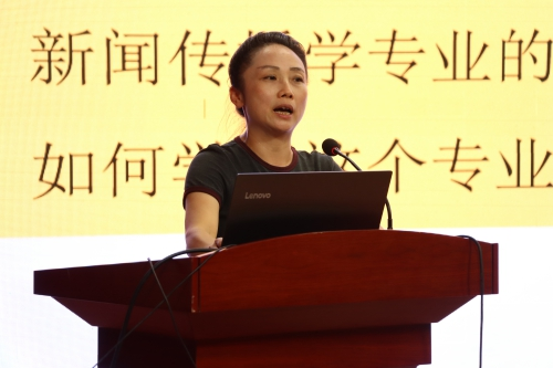 宋艳丽首先回应了新闻传播学的价值,并从自身学习经历出发,就如何学好新闻传播学专业提出了三点建议:一是需要树立正确的价值观;二是通过多写多练提升逻辑思维能力,三是通过广泛阅读提升文化素养。同时,她详细介绍了新闻传播系的历史沿革、师资力量和建设成效,并对新闻学和广播电视学专业的人才培养体系、专业课程、实践平台、特色实践活动和相关学科赛事进行了介绍,并以优秀毕业生的就业情况为例来向学生展示新闻传播学专业的就业前景。