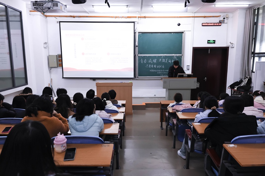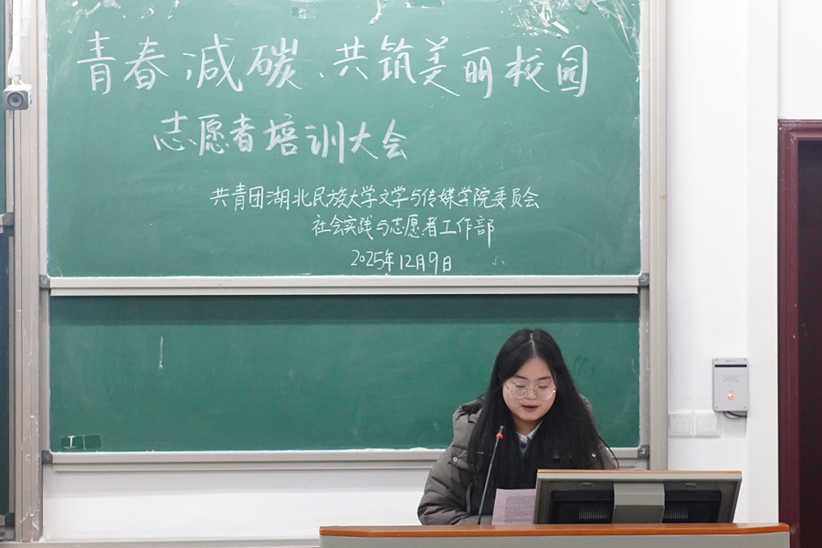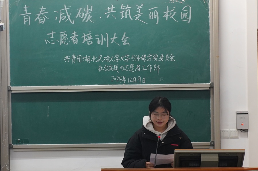 本网讯(记者 冷丽 李蓉华 莫秋萍(见习)/文 徐荣(见习) 李悠然(见习)/图12月9日,共青团365电子娱乐官方网站文学与传媒学院委员会社会实践与志愿者工作部于修远楼5A101教室举行以“青春减碳·共筑美丽校园”为主题的志愿者培训大会。青年志愿者协会成员及硒望之光团队成员参加本次培训大会。