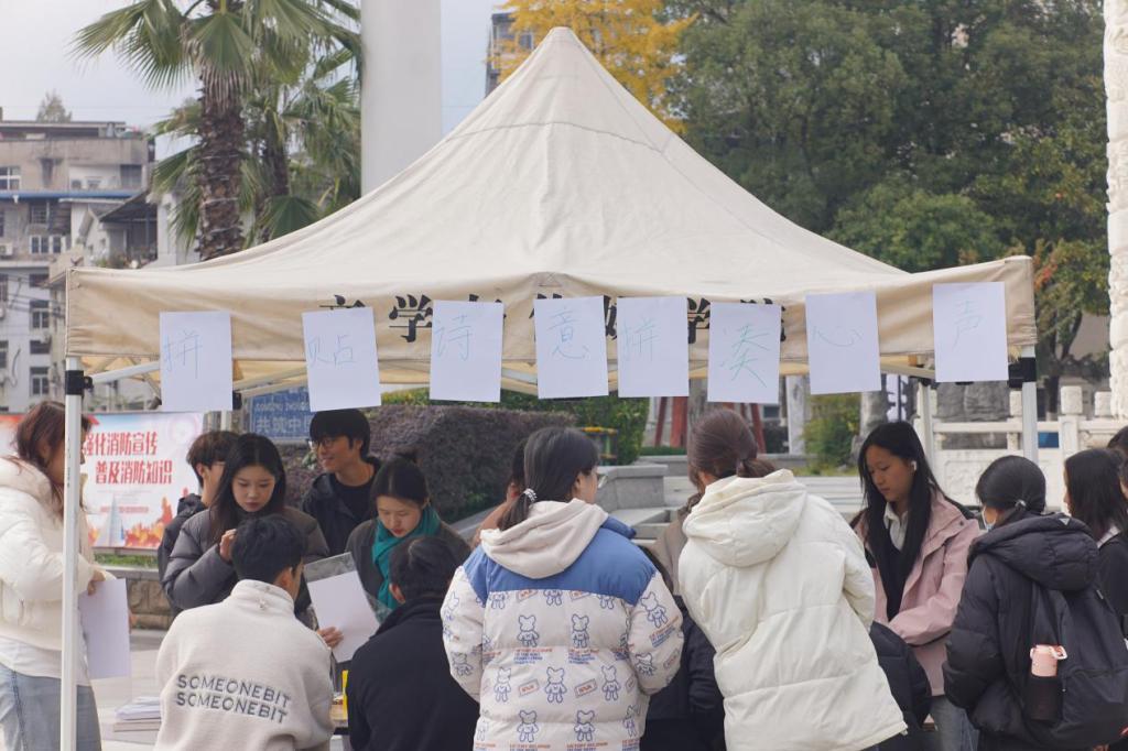 本网讯(记者 张晓琪 李蓉华(见习)/文 莫秋萍(见习)徐荣(见习)/图)11月23日,我院心理健康工作室在大学生广场成功举办“拼贴诗意,拼凑心声”拼贴诗创作活动,现场气氛热烈,参与者热情高涨。