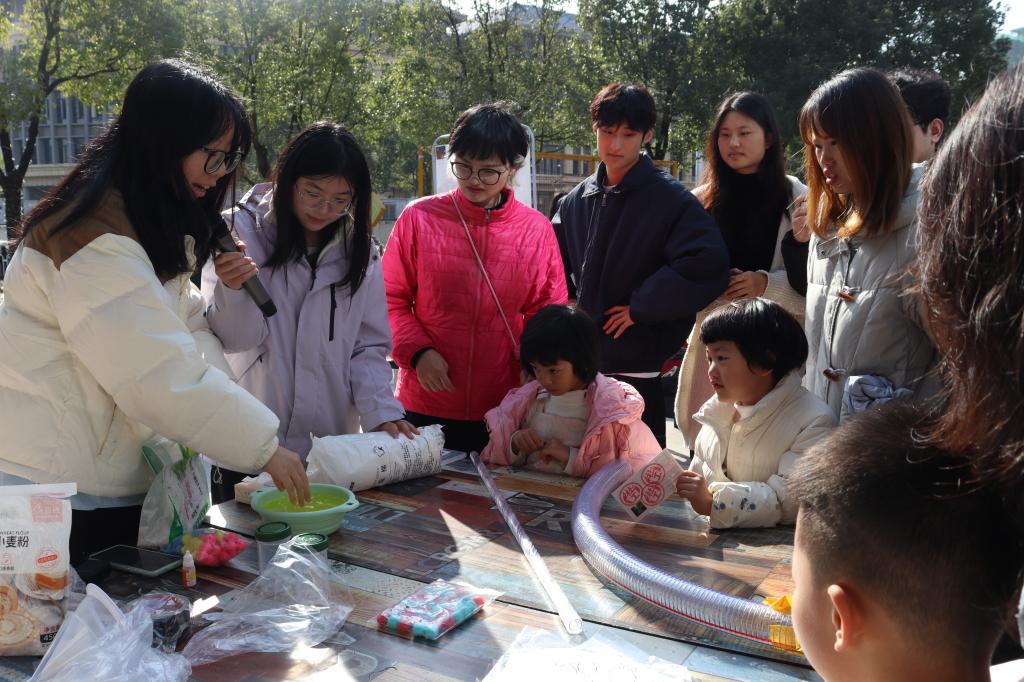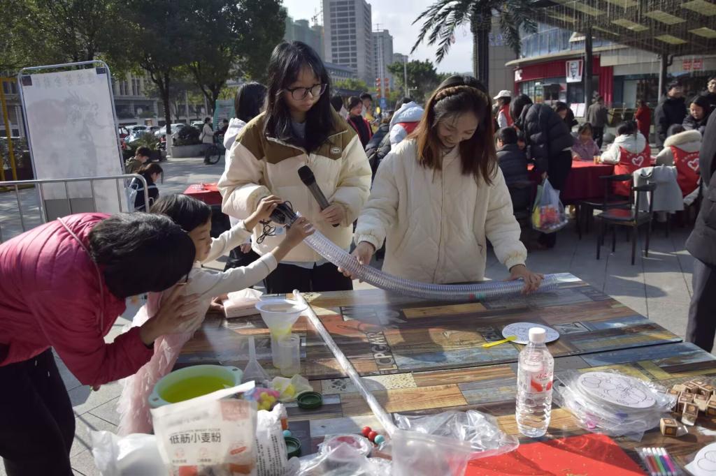 本网讯(记者 宋正悦 蒋文雅(见习) 韩璐(见习)/文12月14日,共青团365电子娱乐官方网站文学与传媒学院委员会社会实践与志愿者工作部携手“管安童行,源梦护航”志愿服务队,在金子坝社区星汇广场举办“传承非遗韵,共织爱国情”特色活动。活动以非遗体验为纽带,融合民族团结教育、爱国情怀培育与管道安全科普,为社区居民青少年开展了一场兼具文化厚度与实用价值的公益实践活动