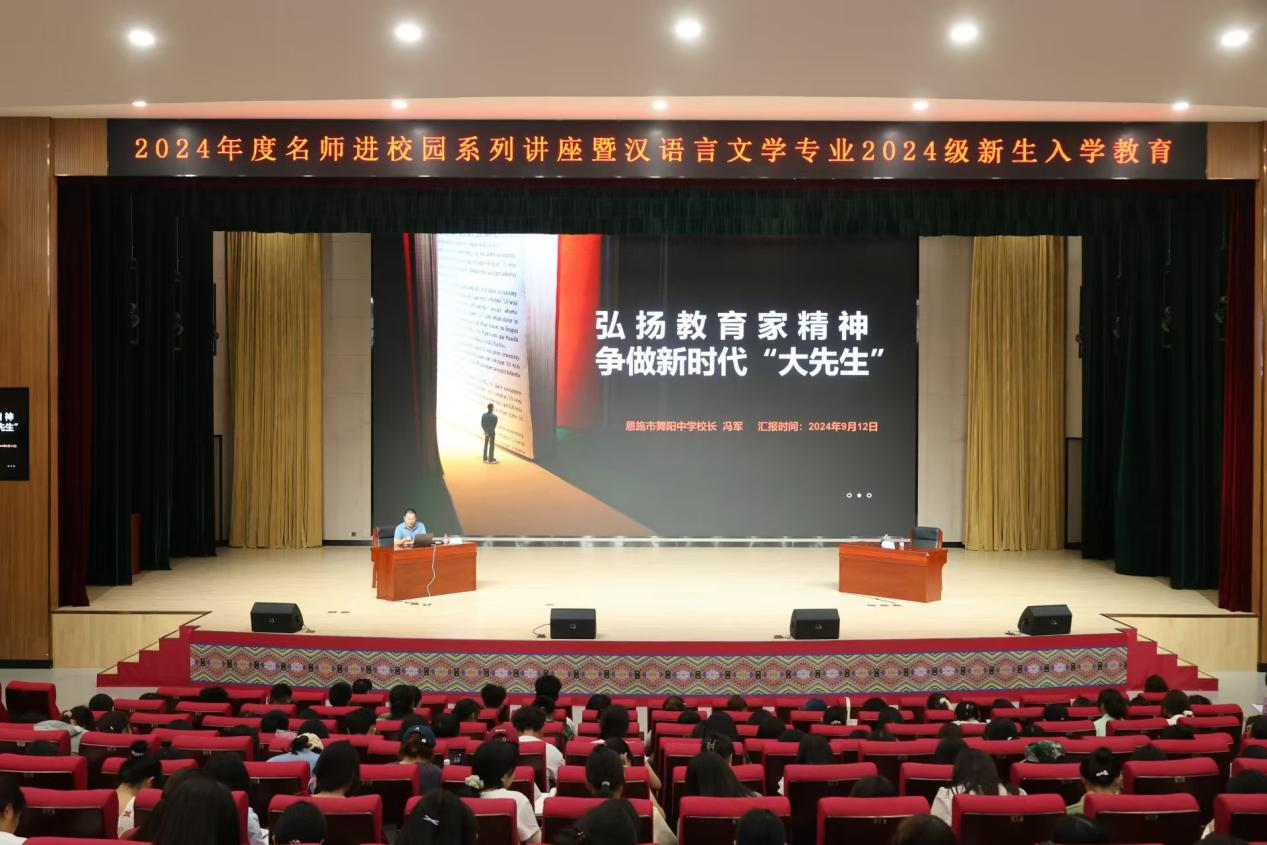 本网讯(通讯员 马锐)为持续提升汉语言文学师范生的专业素养,文学与传媒学院于10月10日下午在9B502教室举办了2024年度名师进校园系列讲座。讲座特邀咸丰县民族中学校长、特级教师胡春艳老师,为汉语言文学专业的师生们带来了一场主题为“素养生花,让学生真正遇见自己——基于核心素养下的初中语...