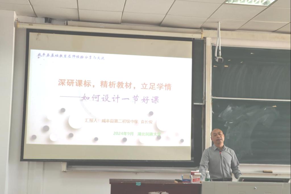 本网讯(通讯员 马锐)为系统提升汉语言文学专业师范生的专业素养,文学与传媒学院于9月26日下午在9号教学楼502教室成功举办了2024年度名师进校园系列讲座。咸丰县第二初级中学高级教师袁长俊老师,为汉语言文学专业师生带来了一场主题为“深研课标,精析教材,立足学情——如何设计一节好课”的精...