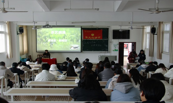 本网讯(记者 田梦奇/文 记者 朱晨蔚(见习)/图)12月3日,茶文化协会在文传楼附101教室举办以“品茗享茶趣,以茶会佳友”为主题的品茗会活动。活动分为茶礼讲解和茶艺表演两部分。茶礼讲解环节中,主持人介绍茶叶、茶具及茶礼基本知识,展示了以茶会友的传统文化;茶艺表演环节中,表演者向观众展...