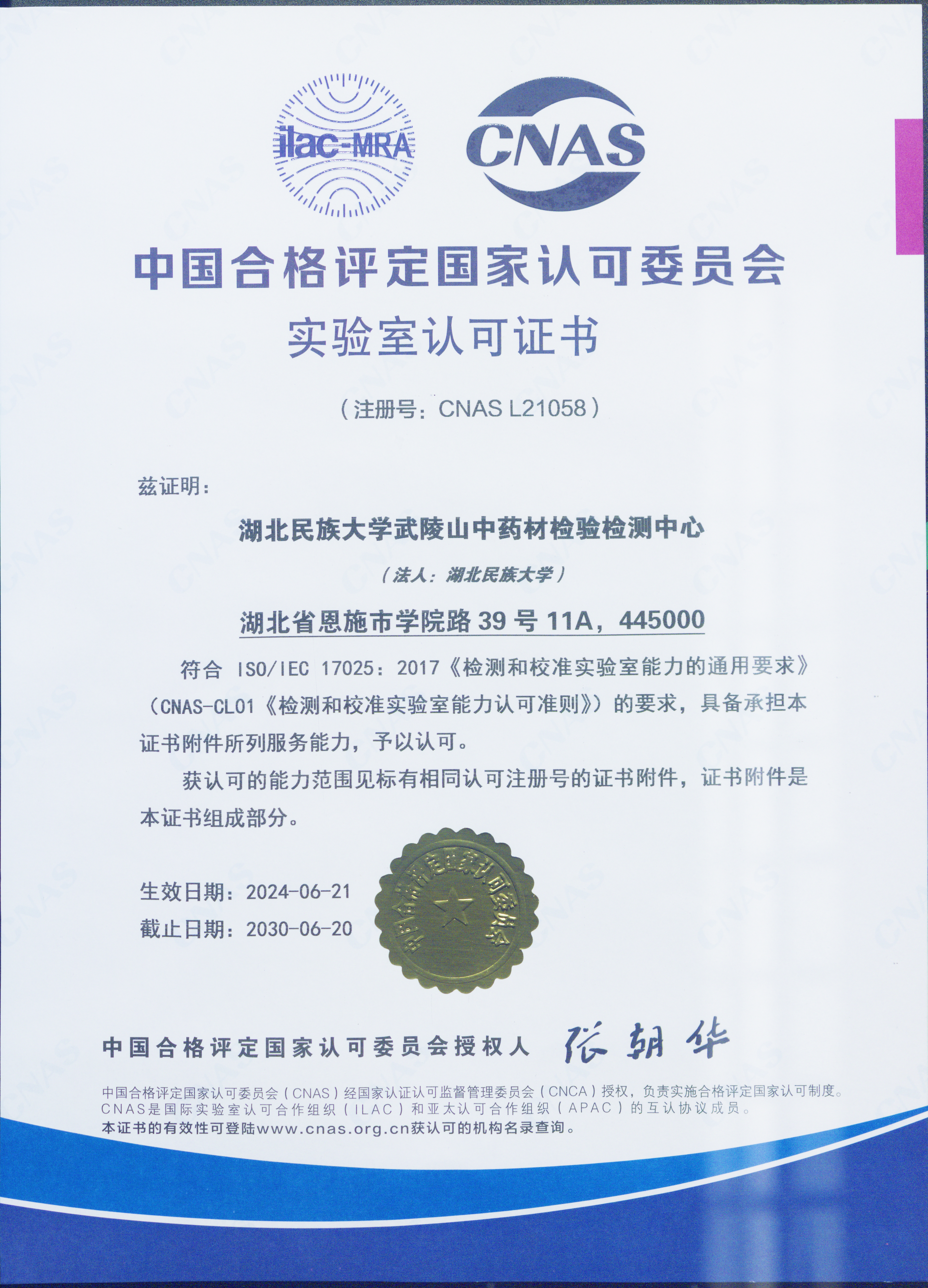 武陵山中药材检验检测中心通过CNAS认证