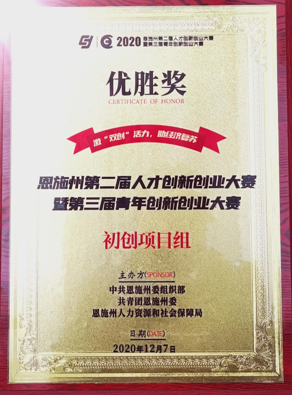 中心一项目获得恩施州第二届人才创新创业大赛暨第三届青年创新创业大赛总决赛优胜奖