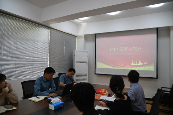 4月20日下午,全体党员在中心A301会议室召开了“聚焦二十大精神学习主线,推动中心党建工作高质量发展”主题党日活动,入党积极分子列席参会。会上,先后对《党的二十大文件汇编》《党的二十大报告学习辅导百问》《二十大党章修正案学习问答》及《习近平谈治国理政》第四卷中关于文化建设及文化自信的相关内容进行了学习和交流,并针对《关于在全党大兴调查研究的工作方案》《习近平在第十四届全国人民代表大会第一次会议上的讲话》进行了深度学习,观看了警示教育片《忠诚与背叛》。支部党员田力同志主讲了学习贯彻党的二十大精神专题党课《聚焦2023全国两会》,对两会的情况简介、大会通过的重要改革方案、要点内容进行了传达,并提出青年党员应主动学习两会精神,并积极思考奋进新征程应当做什么、如何做、做到什么。随后,入党积极分子对第一次参加党组织活动发表了自己的感想