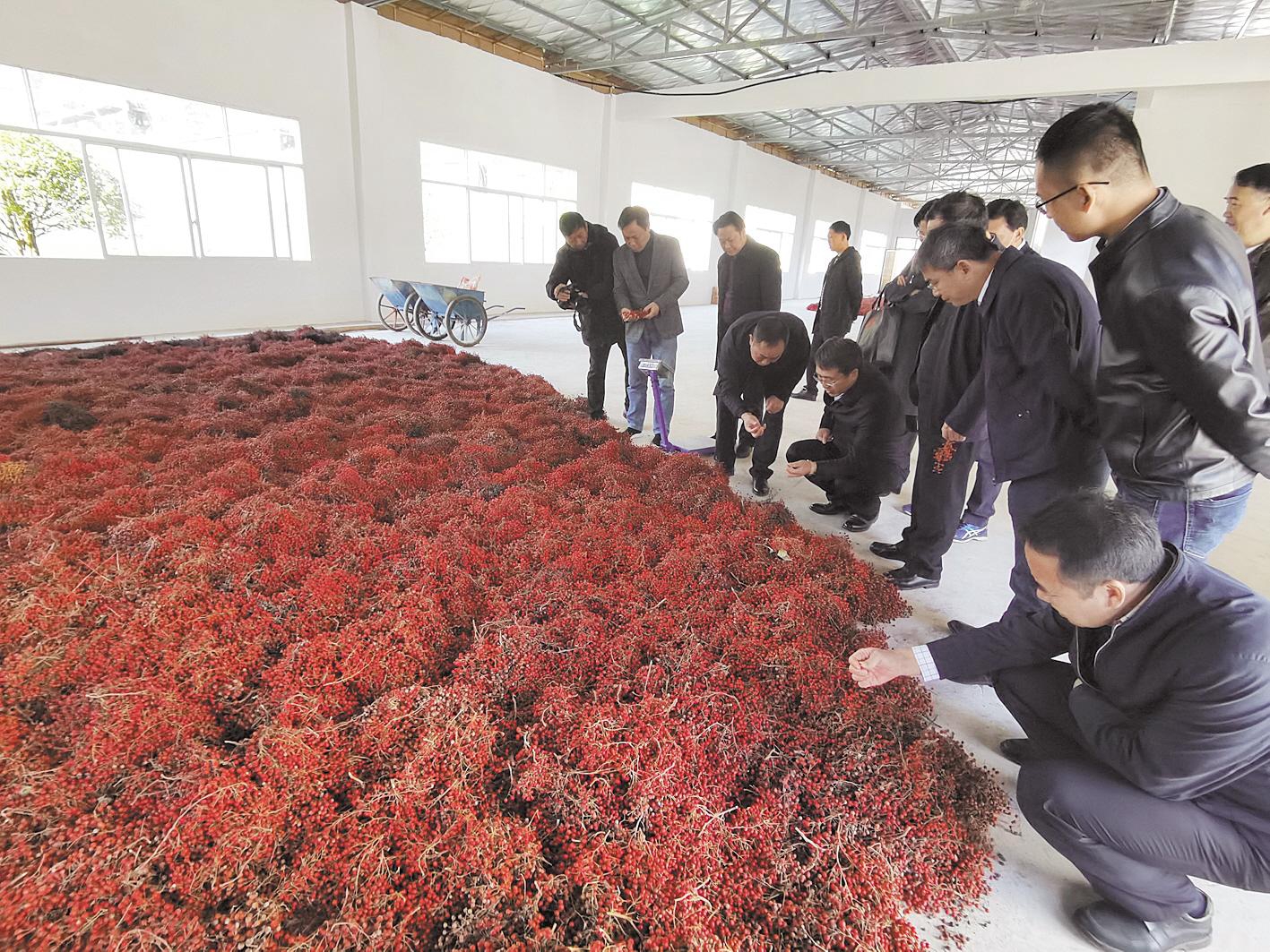 记者看到,山桐子果实成熟后鲜艳无比,摊晾在公司仓库里,犹如一片红色的海洋。