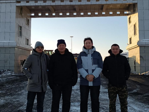 阿斯哈提别克·塔巴热克(右二)在新闻采写中与工作人员合影留念