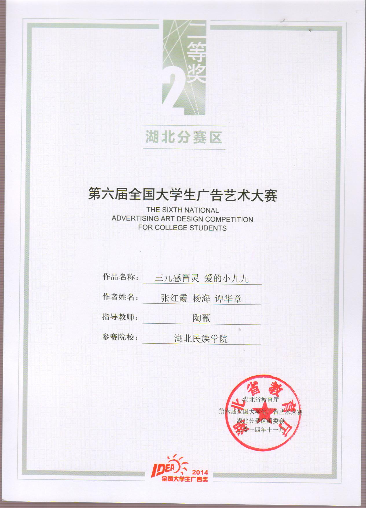 文学与传媒学院在第六届大学生广告艺术大赛湖北分赛区中获得多项奖项。