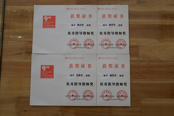2015第九届创意中国设计大赛获奖名单揭晓,我校艺术学院学生朱武林的作品《四时字体设计》荣获一等奖;朱邦才、朱海凌的《语言暴力》,王艳辉的《京剧》,陈坤的《MUJI器皿类广告招贴》,黄思诗的《拒绝抄袭——从小做起》等作品获得二等奖;员宇斐、李静、朱海凌、孙凯四位同学的作品获得了三等奖。艺术学院获评为“优秀设计院”,杨琴琴、姜蓓美、杨发章、杨小杉四位老师被评为优秀指导老师。