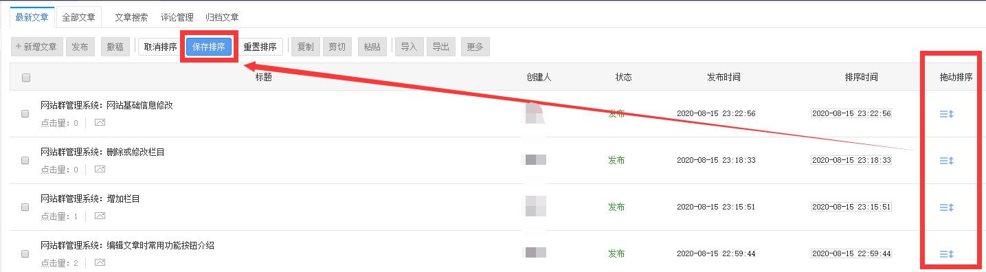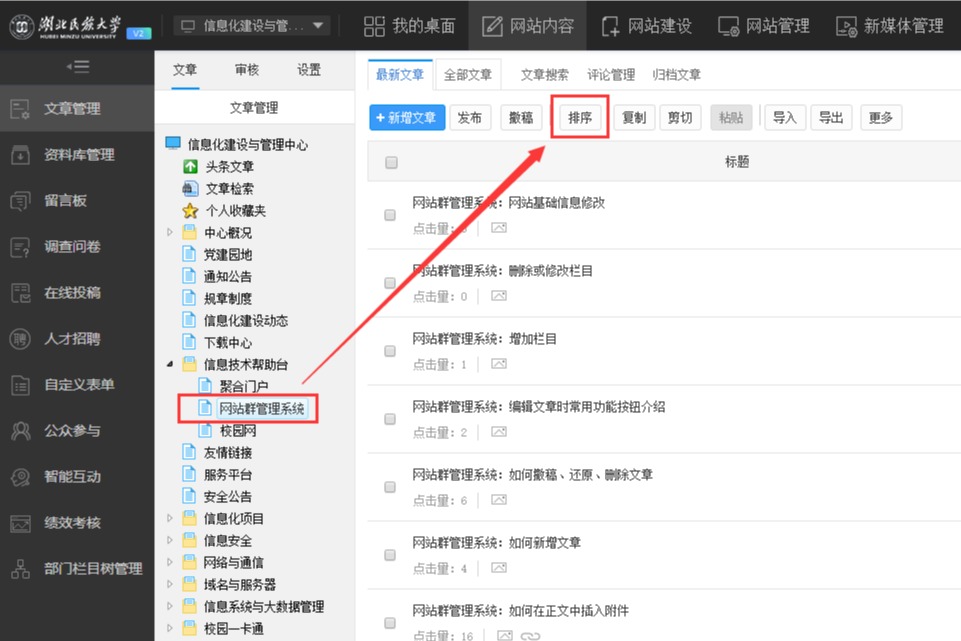 【网站群管理系统】栏目文章排序
