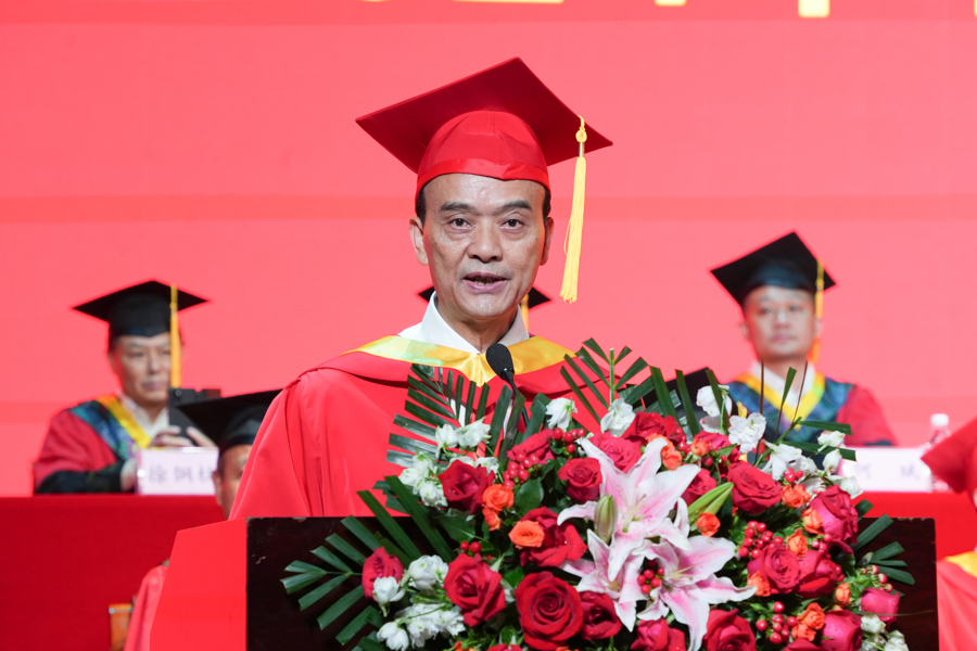 他寄语同学们胸怀国之大者,砥砺家国情怀,赓续红色血脉,自觉将个人的“小我”融入国家的“大我”、融入人民的“大我”,始终与时代同步伐、与国家同奋进、与人民同甘苦,做一个有大爱、大德、大情怀的人,用实际行动兑现“请党放心、强国有我”的铮铮誓言。他希望同学们脚踏实地、内心强大、坚韧不拔,在逐梦山海的道路上,抢抓机遇、勇毅前行,在火热的青春中放飞人生梦想,在奋斗的年华里成就事业华章。