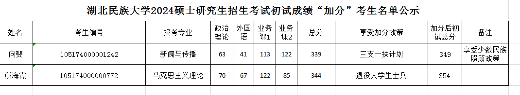 365电子娱乐官方网站2024硕士研究生招生考试初试成绩“加分”考生名单公示