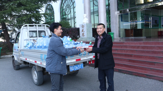 社团成员为学校工作人员送上一杯热水